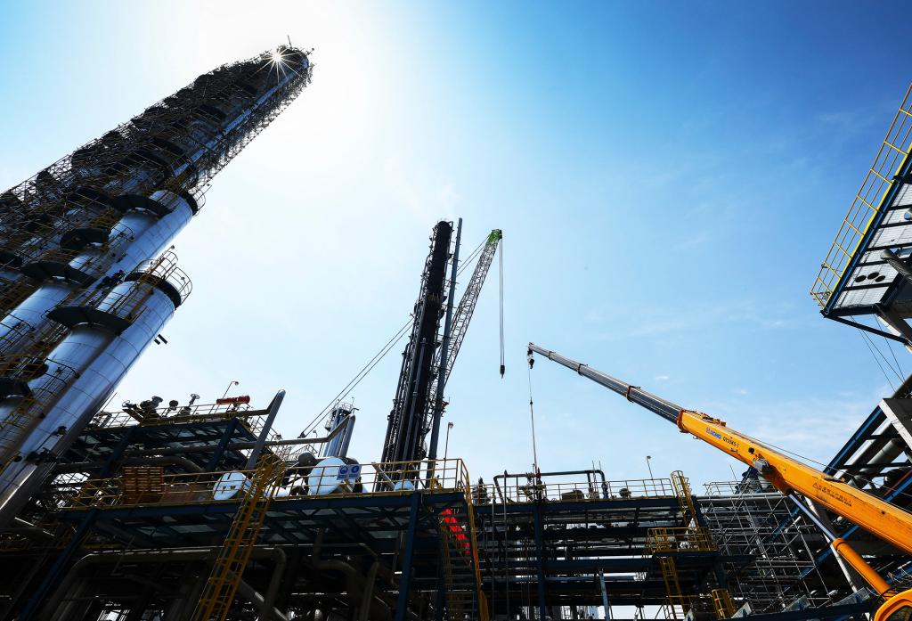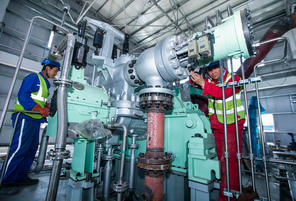 技術(shù)工人正在對(duì)合成氣壓縮機(jī)進(jìn)行安裝調(diào)試