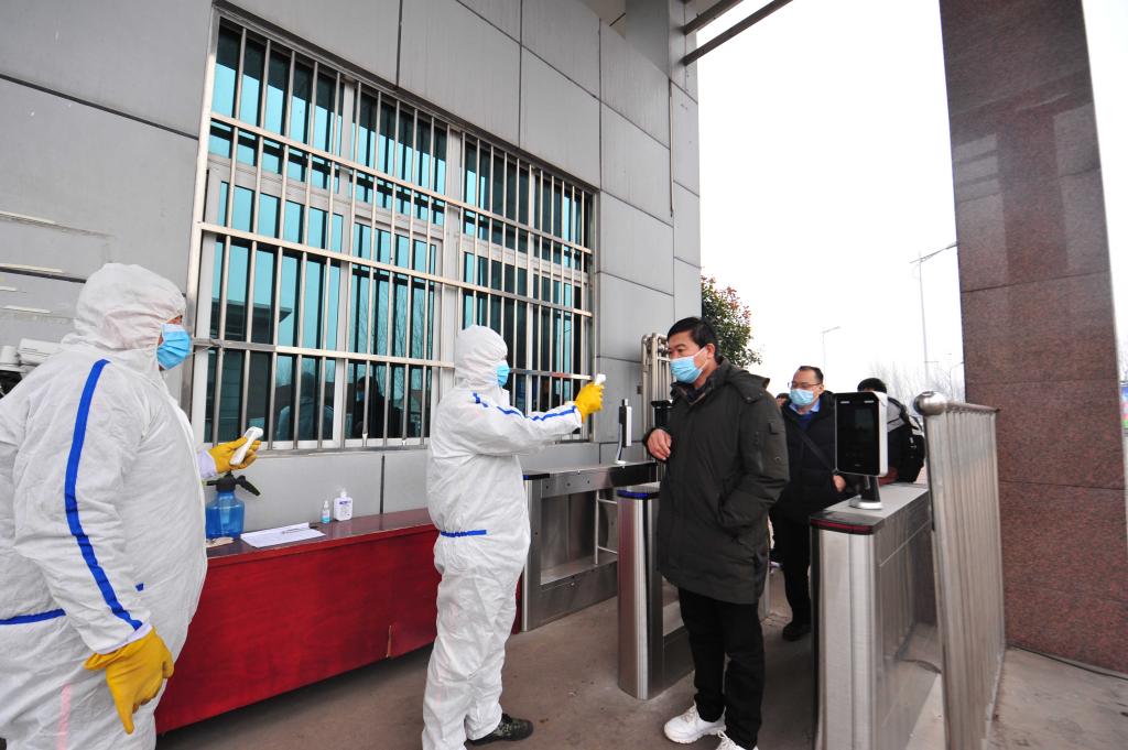 “師傅請您對準閘機面部識別屏幕,系統會自動識別您的身份信息及行程軌跡?!薄皫煾担l機顯示您體溫略高,請您在門外稍等片刻重新測量?!?/p>