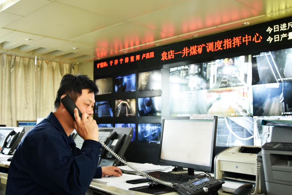 調(diào)度員余勇敢正在接聽井下生產(chǎn)電話。“要嚴(yán)格落實(shí)礦主要領(lǐng)導(dǎo)的要求,淡化節(jié)日氛圍,抓好安全生產(chǎn),我們是礦安全生產(chǎn)的中樞,更是不能有絲毫大意。”