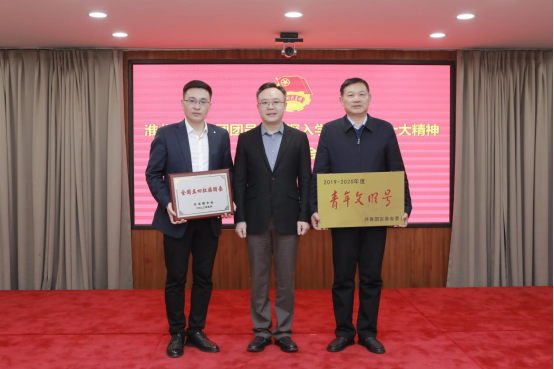 會上,還舉行了“全國五四紅旗團委”“安徽省青年文明號”授牌儀式,并為淮北礦業(yè)集團團校進行揭牌。