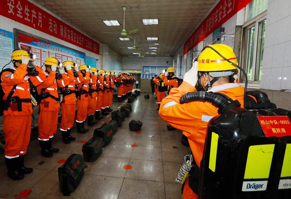 淮北礦業(yè)集團(tuán)及淮北礦業(yè)領(lǐng)導(dǎo)孫方、葛春貴、周衛(wèi)金、朱世奎、聶政;國(guó)家礦山安全監(jiān)察局安徽局監(jiān)察執(zhí)法二處處長(zhǎng)張建亭等現(xiàn)場(chǎng)觀摩演練。