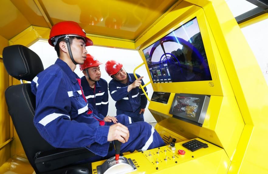 通過新型掘進仿真培訓系統,臨渙礦創新應用“仿真設備+虛擬場景”技術,精準還原井下作業環境。學員在培訓車間內,全面實景實操搭載VR系統的仿真設備,屏幕實時呈現井下巷道布局、煤巖構造等細節,沉浸式完成掘進機截割、轉載煤巖等全流程操作。