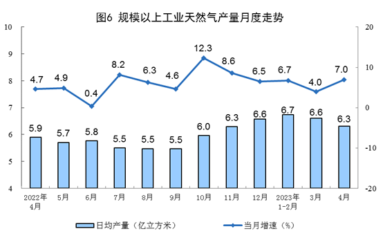 天然氣生產(chǎn)增速加快,進(jìn)口保持較快增長。4月份,生產(chǎn)天然氣189億立方米,同比增長7.0%,增速比3月份加快3.0個百分點,日均產(chǎn)量6.3億立方米。進(jìn)口天然氣898萬噸,同比增長11.0%,增速比3月份放緩0.6個百分點。